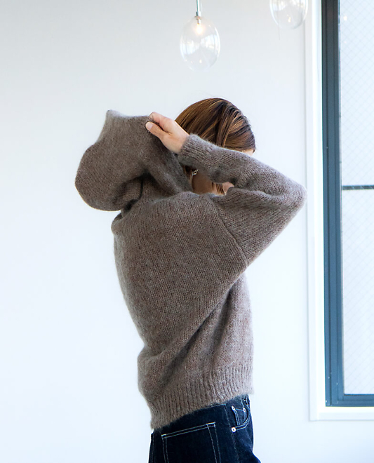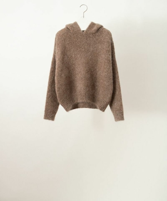 「カフェモーニング」はフード付きのニットです。