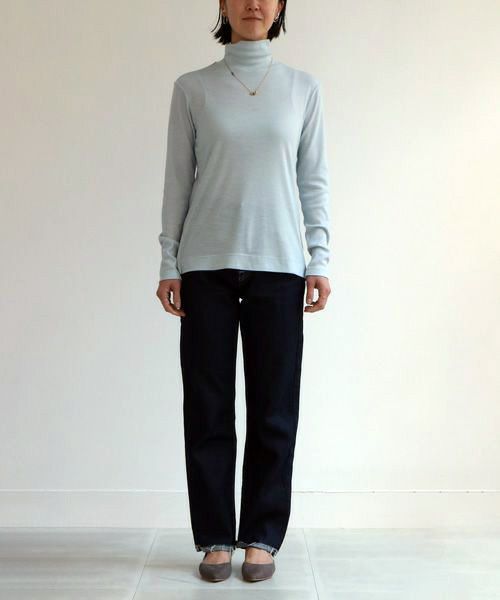 ハイネックでニットの下や、ジャケットの下にサラリと合わせることができ、