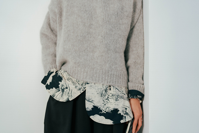 「トワルドジュイシャツ」をはおって。